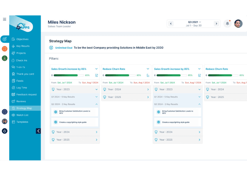 Manage your strategy visually and let AI agents help keep everyone aligned and on track.